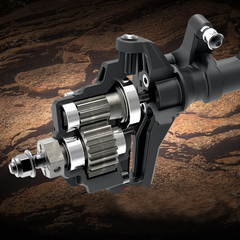 The portal axles use gear reduction right at the wheels that dramatically reduces undesirable torque twist. Total axle gear reduction is over twice non-portal designs. The Titan 550 motor torque is translated into straight, powerful, forward motion, rather than wasted energy twisting your rig right off the rocks.